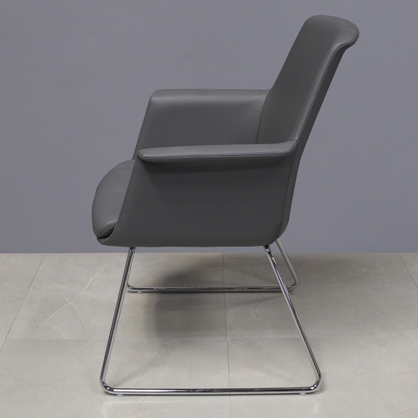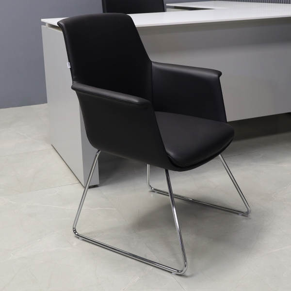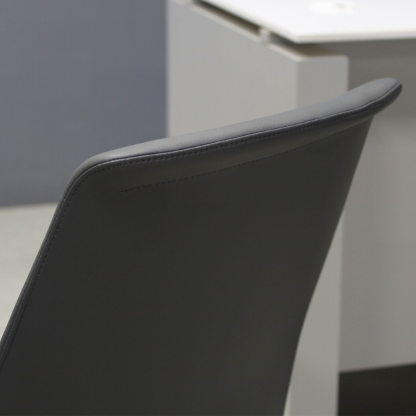 This sleek and modern guest chair is perfect for any office setting. Upholstered in black or gray leatherette, this chair exudes elegance and sophistication. The high-density foam cushion provides maximum comfort for your guests.