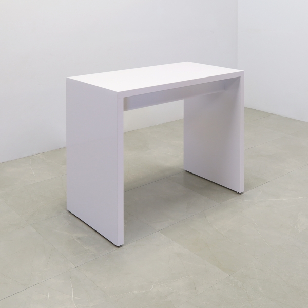 Introducing the Ashville Bar Table - 46 inches, a blend of sophistication and durability. Meticulously crafted with Plywood and MDF, featuring a White Gloss Laminate top and base, ensuring resilience against scratches. Hand-made from scratch in our studio, this bar table elevates any space. In stock and ready to ship, experience premium quality and style today.