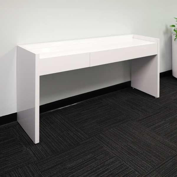 The Avenue Console Table epitomizes modern commercial design with a robust internal structure crafted from commercial-grade plywood and MDF. Its exterior is fortified with high-pressure laminates, ensuring durability and a sleek finish that complements any space.