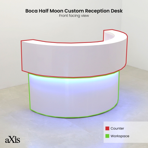 The Boca Half Moon Custom Reception Desk offers a modern, sleek design perfect for any office. With a variety of colors to choose from, you can find the ideal look for your space. Durable furniture construction ensures this desk will make a lasting addition to any professional setting.