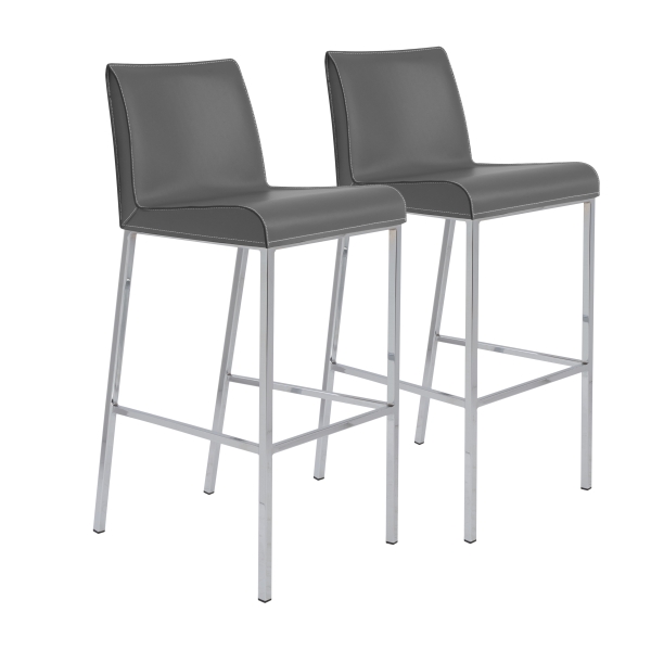 A variation on a modern classic. The real leather seats and backs offer up a sense of elegant luxury. The polished stainless steel legs and footrests make them as strong as they are contemporary.