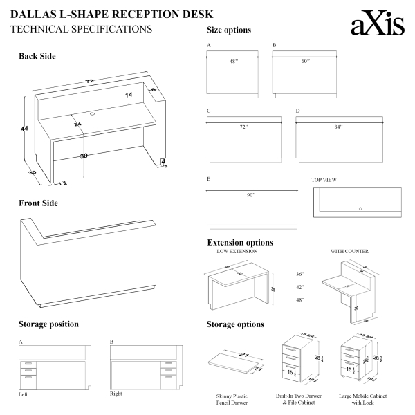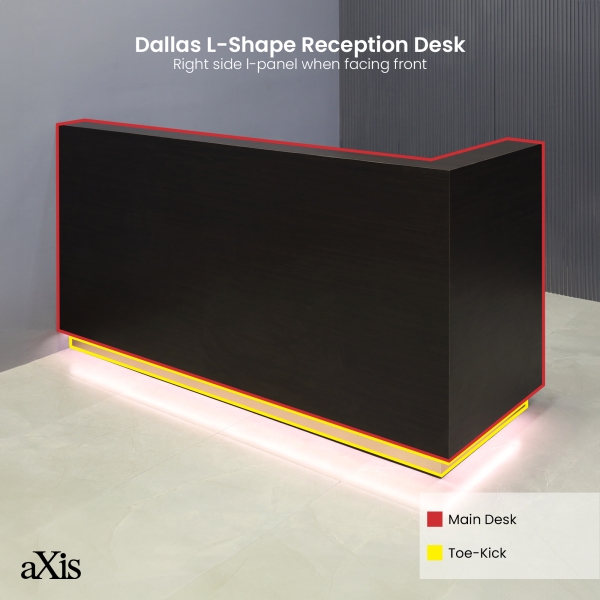 The Dallas L-Shape reception desk is part of our modern and innovative commercial designs. Constructed with a combination of commercial-grade plywood and MDF, the internal structure of the Dallas L-Shape reception desk is durable and built to last. The outer surface is protected with high-pressure laminates, ensuring a long-lasting finish that is easy to maintain.