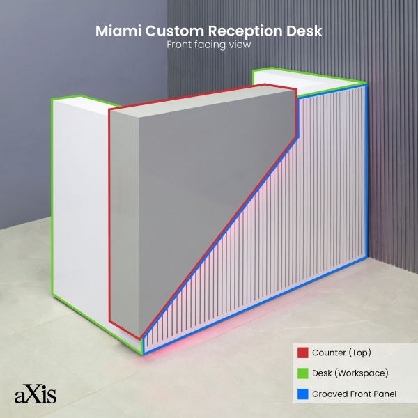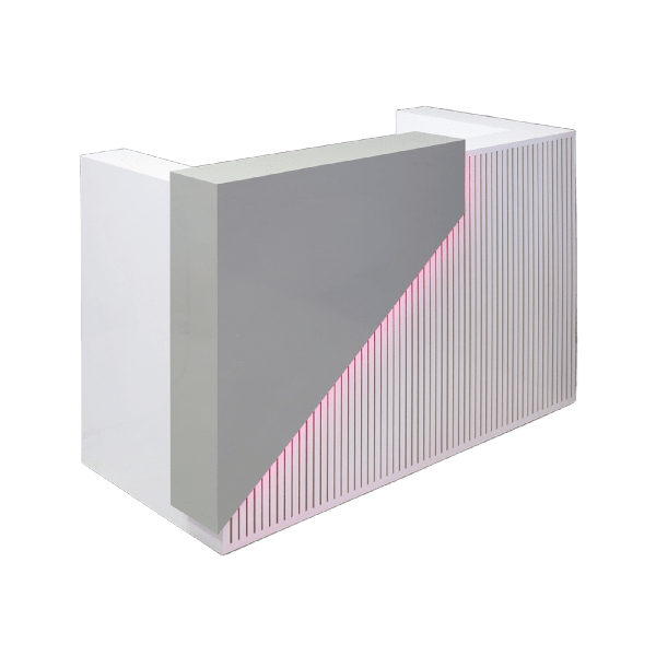 This modern and elegant reception desk can make a definite statement in any lobby area. We custom design and manufacture this innovative reception desk in South Florida with commercial grade materials.