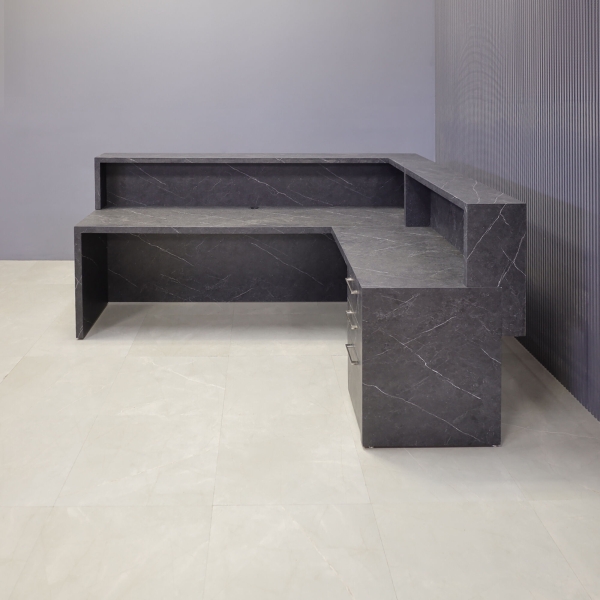 Introducing the San Francisco Large L-Shape Custom Reception Desk—a perfect fusion of style and functionality for expansive spaces. Tailor the sizes of both the U-shape and L-shape pieces to seamlessly fit your environment. You can also select the side of the L-shape that best suits your workspace layout. Crafted from a durable blend of Plywood and MDF, this desk is built for longevity and elegance.