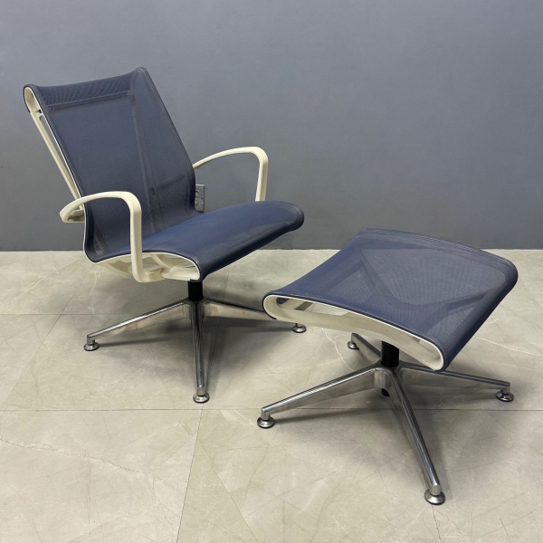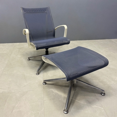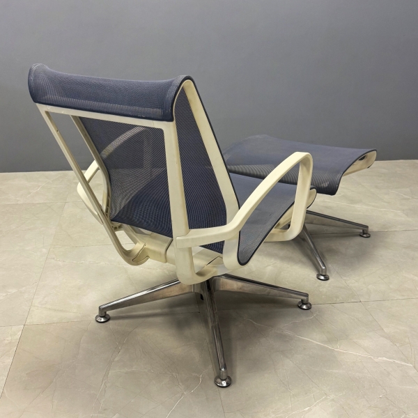 Introducing the Blue Mesh Swivel Chair with White Frame and Ottoman, designed to keep you comfortable and productive throughout your busy day. This ergonomic office chair features a breathable blue mesh back and a padded seat for maximum comfort, ensuring you stay focused on your tasks. The included ottoman provides additional comfort and support. Elevate your workspace with this stylish and functional chair, perfect for any space.