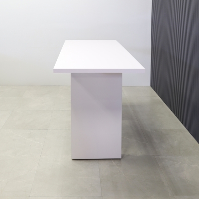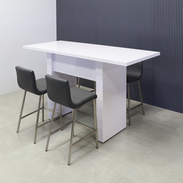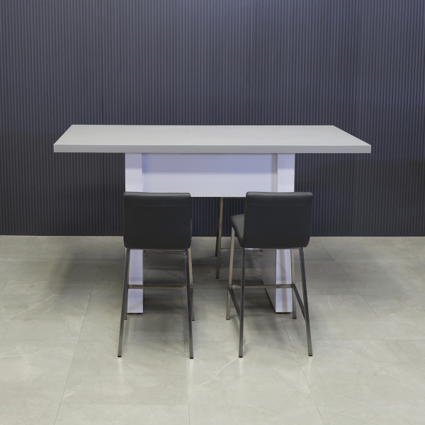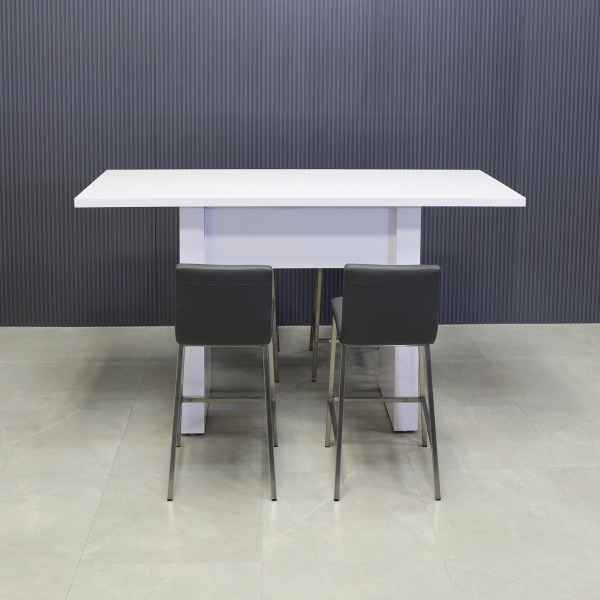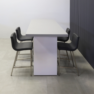 Introducing the Windsor Laminate Bar Table - Your Style, Your Size. Select from widths of 48 to 180 inches and heights of 36 or 42 inches, tailoring it perfectly for your space. Discover a range of laminates for both the top and base, allowing you to create your unique look. Built to last with durable and scratch-resistant surfaces, this table is designed to endure. Each piece is meticulously handcrafted from scratch in our studio, infusing a touch of originality into your environment. Elevate your space with a Windsor bar table that's truly one-of-a-kind.